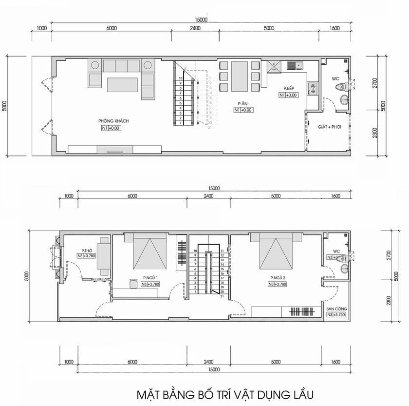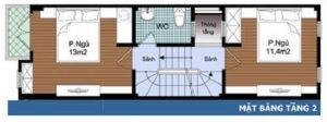 Mẫu nhà 2 tầng mái bằng 3 phòng ngủ, 1 phòng thờ