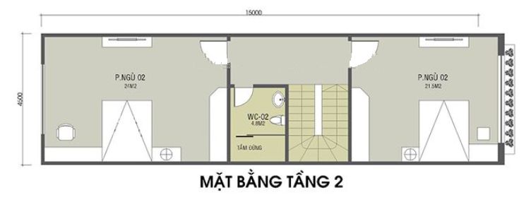 Tầng 2 được bố trí 2 phòng ngủ sát nhau và phòng thờ cạnh cầu thang. Còn phòng ngủ còn lại sẽ nằm dưới tầng 1. Tông màu chủ đạo trong nhà là vàng trắng tươi sáng.