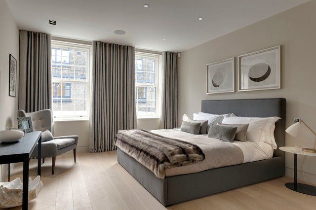 - Phòng ngủ: Nên chọn tone màu nhẹ nhàng, thư thái như màu kem, tím, be,… hoặc màu trung tính sẽ rất phù hợp với không gian nghỉ ngơi, thư giãn.